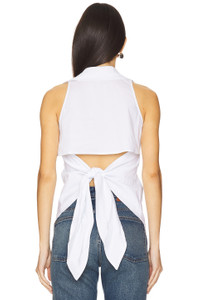 - 75% cotton 22% nylon 3% spandex - Dry clean only - Front button closures and back tie closure - Collared design - Cut-out at back - Midweight poplin fabric - Revolve Style No. SIMO-WS70 - Manufacturer Style No. W3372-3169-10608
