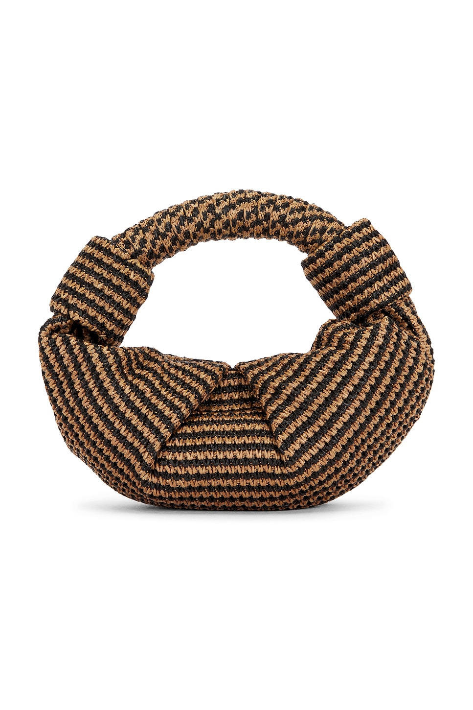 - Raffia exterior with textile lining - Top magnetic button closure - One main compartment - Integrated handle - Measures approx 12" W x 5" H x 2.5" D Top handle with a 4.5" drop - Revolve Style No. SIMO-WY99 - Manufacturer Style No. S849-9264
