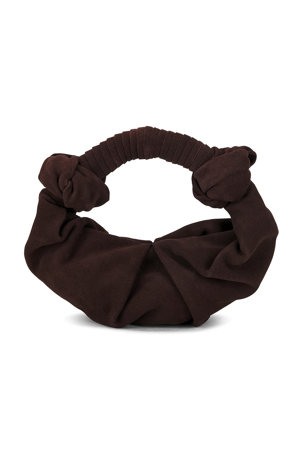 - Suede exterior with textile lining - Top magnetic button closure - One main compartment - Interior card slot - Integrated handle with knotted detailing - Measures approx 12" W x 6" H x 3.5" D Top handle with a 4.5" drop - Revolve Style No. SIMO-WY104 - Manufacturer Style No. S849-9040