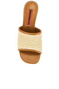 - Woven straw and leather upper with leather sole - Bamboo-like heel - Slip-on styling - Leather footbed and lining - Rounded toe - Approx 65mm/ 2.5 inch heel - Revolve Style No. SIMO-WZ64 - Manufacturer Style No. F311-9246