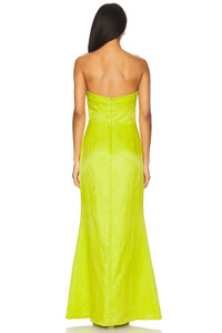 - Satin textile - Imported - Machine wash cold recommended - Fully lined - Hidden back zipper closure - Non-slip silicone neckline Partially boned sides - Midweight satin fabric - Neckline to hem measures approx 52" in length - Revolve Style No. SIMO-WD95 - Manufacturer Style No. W4547-3239