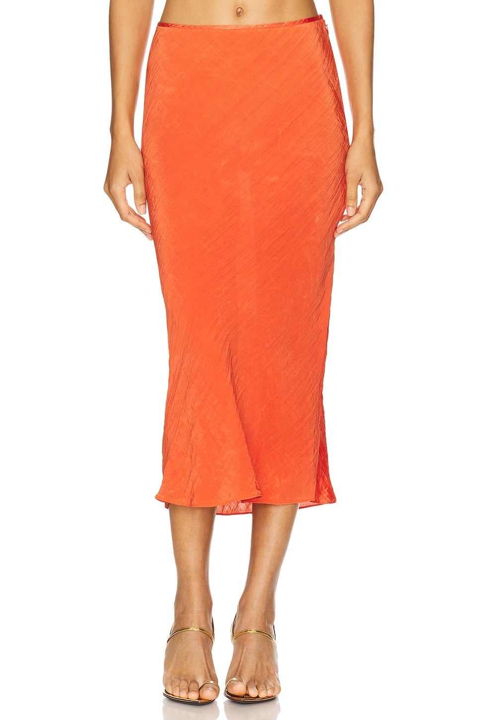 - 80% polyester 20% nylon - Made in China - Dry clean only - Unlined - Hidden side zipper closure - Crinkled satin fabric - Item not sold as a set - Skirt measures approx 31" in length - Revolve Style No. SIF-WQ22 - Manufacturer Style No. SIR125-3035