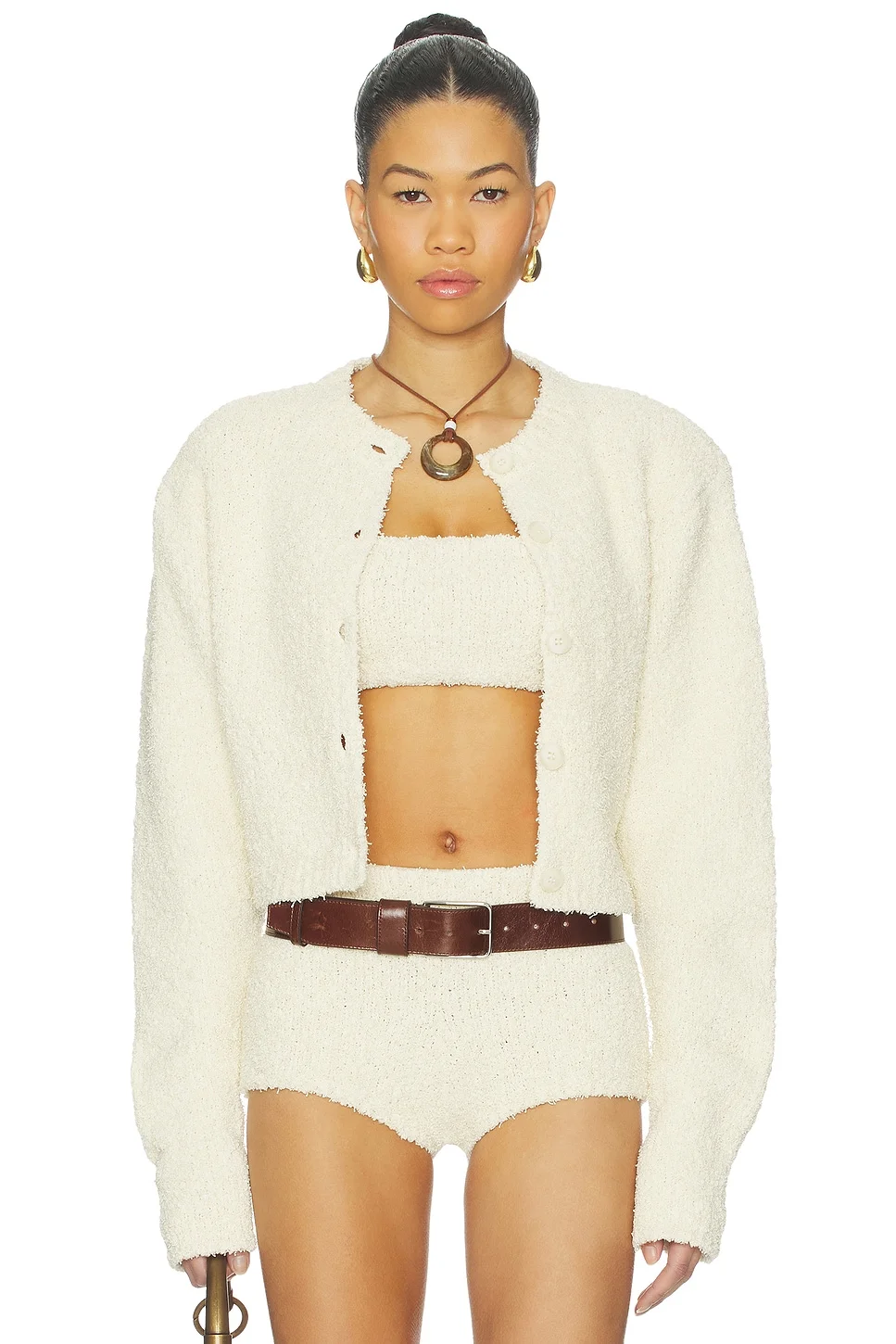 - 75% cotton 25% polyester - Made in China - Dry clean only - Front button - Stretch boucle knit textile - Item not sold as set - Revolve Style No. SIF-WK2 - Manufacturer Style No. SIR425-7035