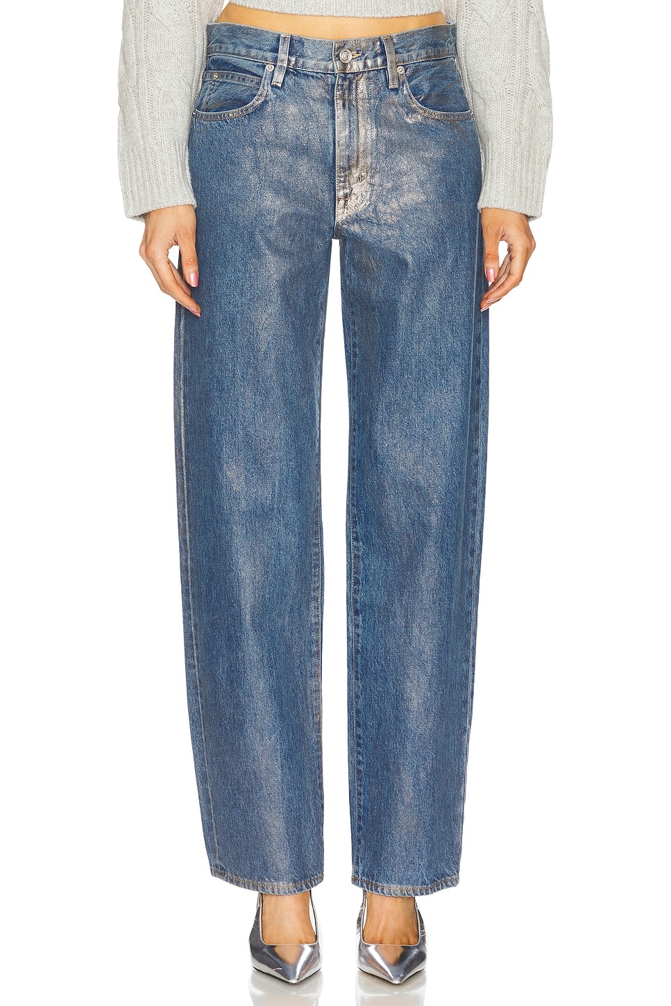 - 100% cotton - Made in USA - Machine wash cold - Zip fly with button closure.5-pocket styling - Rigid denim fabric with metallic coating.21" at the knee narrows to 17" at the leg opening - Revolve Style No. SLKE-WJ153 - Manufacturer Style No. DEVJ707S