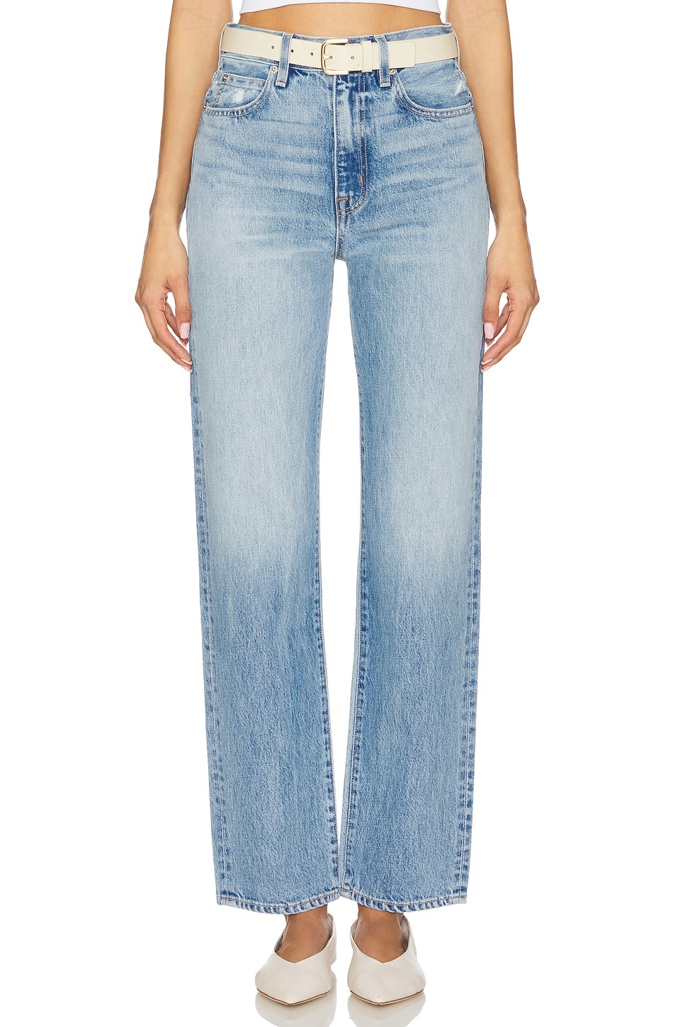 - 100% cotton - Machine wash cold - Zip fly with button closure.5-pocket styling - Rigid denim.16.5" at the knee narrows to 14" at the leg opening - Revolve Style No. SLKE-WJ159 - Manufacturer Style No. LNDJ707S