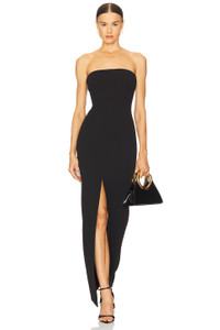- Shell: 95% poly 5% elastane Lining: 90% poly 10% elastane - Dry clean only - Fully lined - Boned sides - Front seam slit - Hidden back zipper closure - Neckline to hem measures approx 59.5" in length - Revolve Style No. SOLA-WD111 - Manufacturer Style No. OS1978