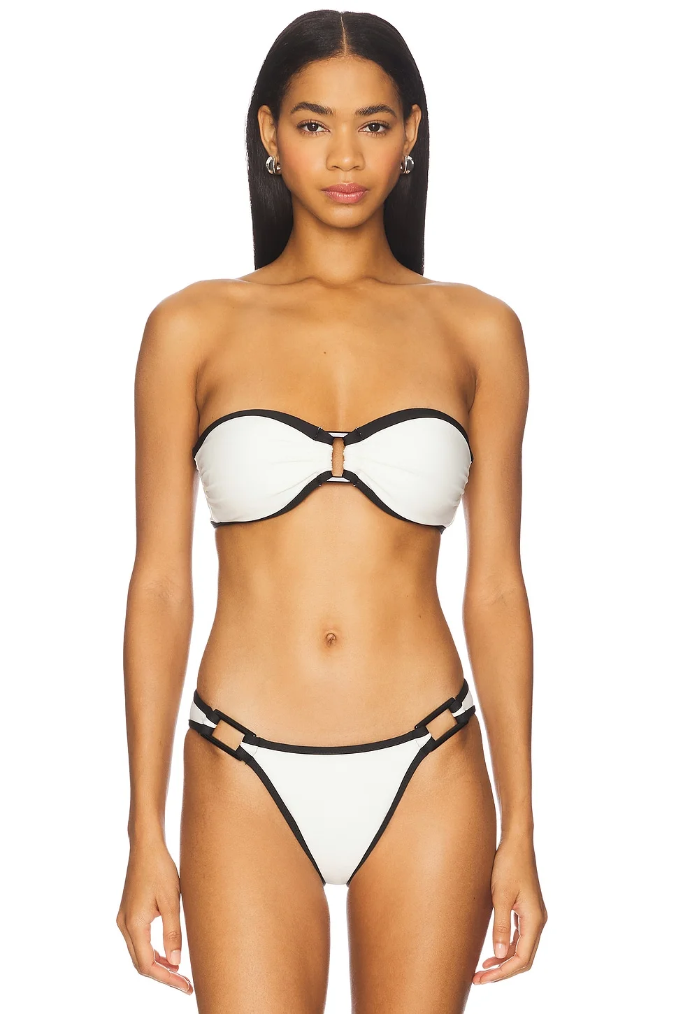 - Self: 75% polyester 25% spandex Lining: 84% nylon 16% spandex - Hand wash - Unpadded - Pull-on styling - Boned sides - Front tonal acrylic rectangle accent - Item not sold as a set - Revolve Style No. SLST-WX857 - Manufacturer Style No. SU25-S045SOL-BR