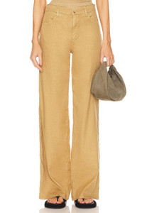 KHAKI LINEN 5 POCKET WIDE LEG PANTS