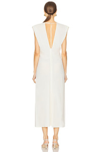 - 97% viscose 3% elastane - Dry clean only - Unlined - Concealed back zipper with hook and eye closure - Adjustable back strap - Midweight crepe fabric - Revolve Style No. SAGN-WD33 - Manufacturer Style No. S25-917OWT