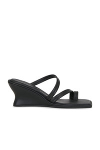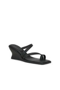 - Sheep leather upper with rubber sole - Slip-on styling - Sheep leather footbed and lining - Strappy styling - Square toe - Approx 70mm/ 2.75 inch wedge - Revolve Style No. SAGN-WZ33 - Manufacturer Style No. S25-112BLK