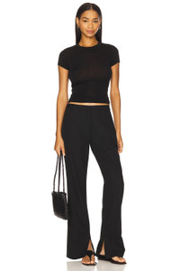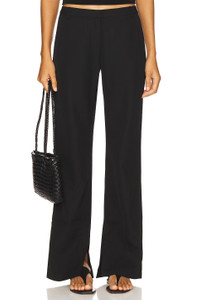 - Self: 51% viscose 49% wool Lining: 100% lyocell - Dry clean only - Zip fly with hook and bar closure.3-pocket styling - Lightweight twill fabric.18" at the knee breaks to 19" at the leg opening - Revolve Style No. SAGN-WP15 - Manufacturer Style No. S25-511BLK