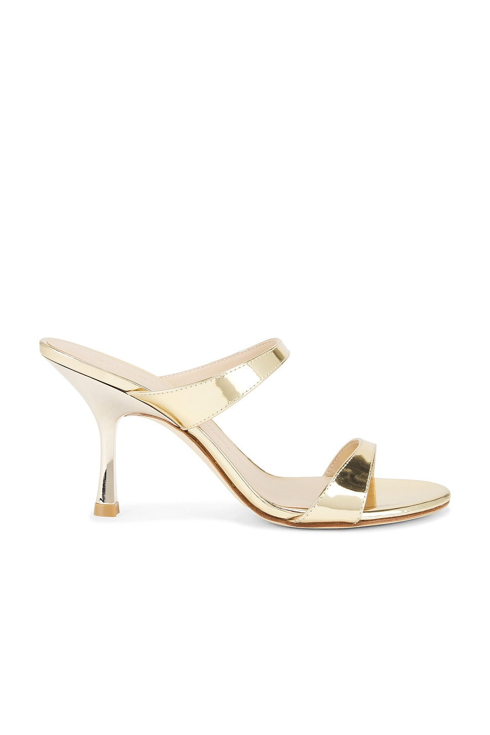 - Metallic patent leather upper with leather sole - Slip-on styling - Leather footbed - Rounded toe - Approx 90mm/ 3.5 inch heel - Revolve Style No. STUA-WZ602 - Manufacturer Style No. SL462