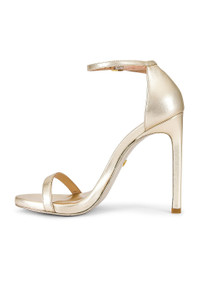 - Metallic patent leather upper and sole - Made in Spain - Ankle strap with buckle closure - Almond toe - Approx 115mm/ 4.5 inch heel - Revolve Style No. STUA-WZ351 - Manufacturer Style No. S6287