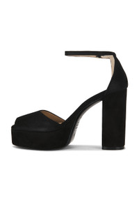 - Suede leather upper with leather sole - Ankle strap with buckle closure - Leather footbed and lining - Square toe - Platform with peep-toe design - Approx 105mm/ 4.25 inch heel Approx 30mm/ 1.25 inch platform - Revolve Style No. STUA-WZ658 - Manufacturer Style No. SN123