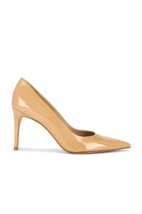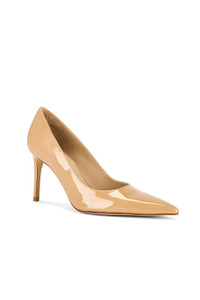 - Patent leather upper with leather sole - Slip-on styling - Leather footbed and lining - Pointed toe with stiletto heel - Approx 90mm/ 3.5 inch heel - Revolve Style No. STUA-WZ607 - Manufacturer Style No. SJ950