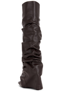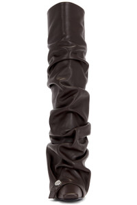 - Leather upper with leather sole - Made in Italy - Pull-on styling - Leather footbed and lining - Pointed square toe - Stiletto heel - Draped leather overlay at upper - Approx 95mm/ 3.75 inch heel Approx 393mm/ 15.5 inch shaft Shaft measures approx 13" in circumference - Revolve Style No. ATTF-WZ146 - Manufacturer Style No. 250WSH00848 - LBT019AA
