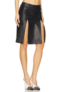 - 100% lambskin - Made in Romania - Professional leather clean only - Unlined - Side zip closure - Front side slits - Lightweight leather fabric - Waist to shortest hem measures approx 8.5" and to longest hem approx 20.5" in length - Revolve Style No. ATTF-WQ95 - Manufacturer Style No. 250WCS00261 - LBT128AA - 100
