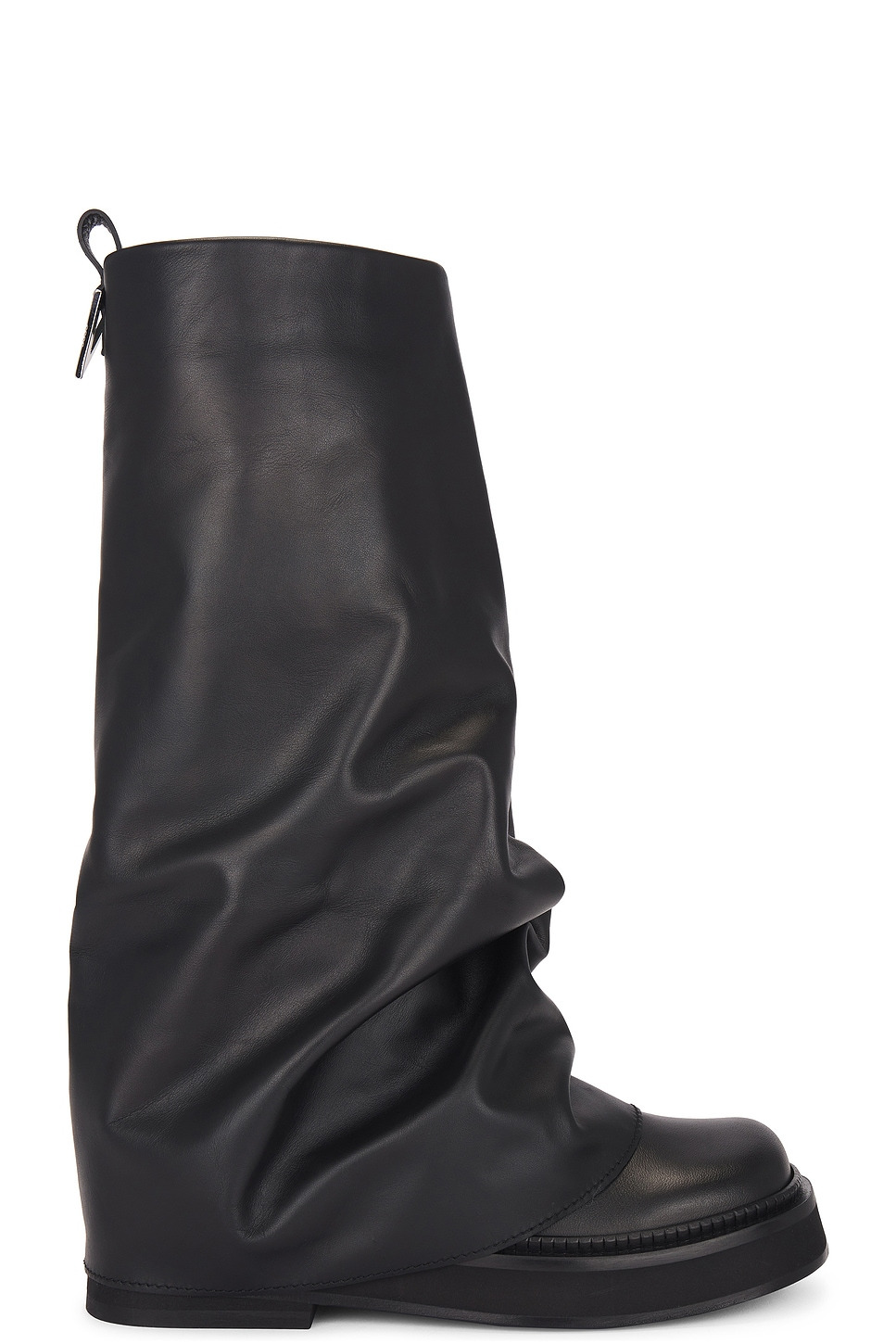 - Leather upper with leather sole - Made in Italy - Pull-on styling - Leather footbed and lining - Layered and ruched styling - Back pull-tab with silver-tone Attico hardware - Slanted square toe - Approx 32mm/ 1.25 inch heel Approx 25mm/ 1 inch platform Approx 330mm/ 13 inch shaft Shaft measures approx 12.56" in circumference - Revolve Style No. ATTF-WZ110 - Manufacturer Style No. 241WS798 - L019 - 100