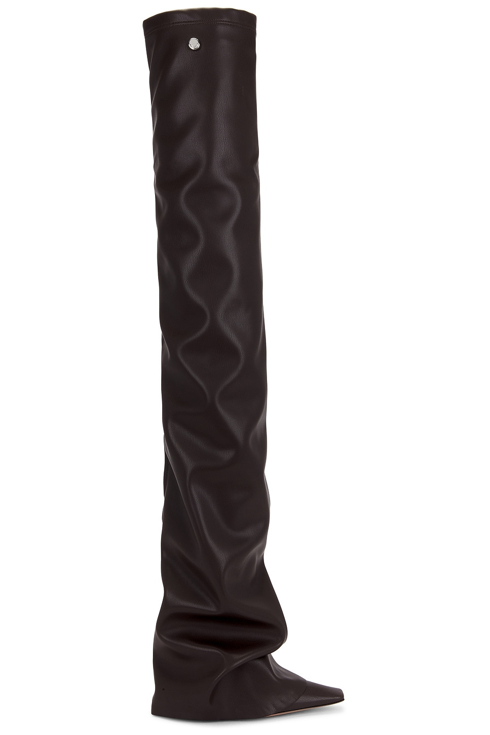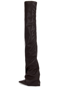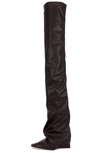 - Faux leather upper with leather sole - Pull-on styling - Cushioned leather footbed with faux leather lining - Side zip closure - Pointed toe - Stiletto heel - Approx 100mm/ 4 inch heel Approx 978mm/ 38.5 inch shaft Shaft measures approx 15.5" in circumference - Revolve Style No. ATTF-WZ169 - Manufacturer Style No. 251WSH00872 - PUR003AA - 064