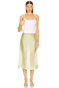 - 90% viscose 10% polyester - Machine wash cold - Partially lined - Concealed side zipper with hook and eye closure - Lightweight organza fabric - Garment is made with a semi-sheer fabric, undergarments can show through - Skirt measures approx 28" in length - Revolve Style No. TENR-WQ8 - Manufacturer Style No. 21473