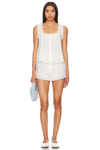 - 100% cotton - Made in India - Machine wash - Pull-on styling with elastic waistband - Front button detail along fly - Lightweight linen fabric with eyelet trim - Item not sold as a set - Shorts measure approx 12" in length - Revolve Style No. GREA-WI50 - Manufacturer Style No. SB645E984