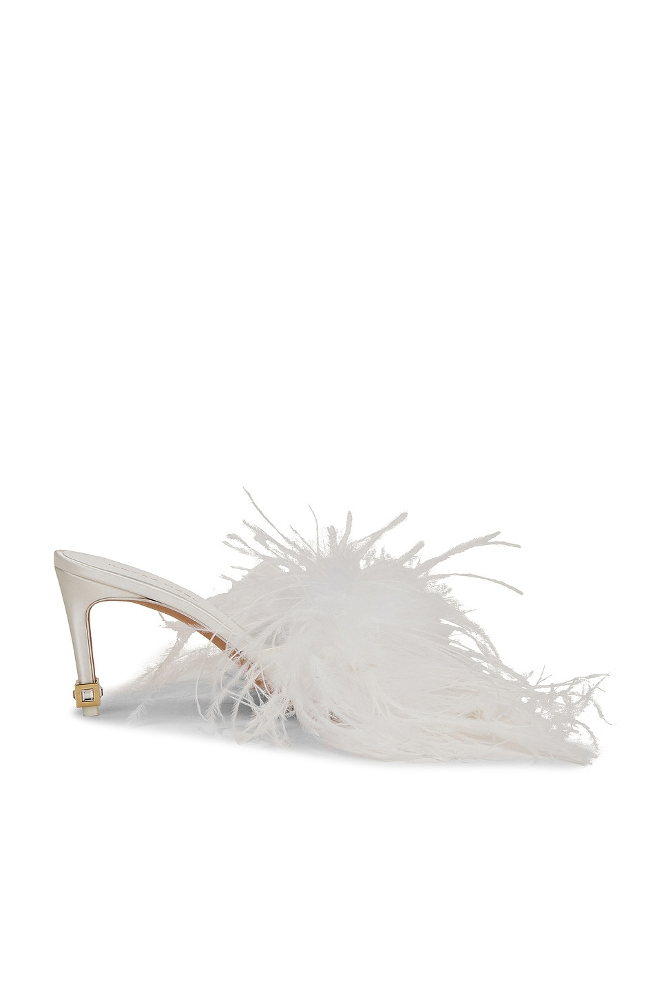 - Ostrich feather upper with leather sole - Made in Italy - Slip-on styling - Leather footbed and lining - Pointed open toe with clear crystal at heel - Approx 90mm/ 3.5 inch heel - Revolve Style No. NARR-WZ6 - Manufacturer Style No. NA0450002-0624