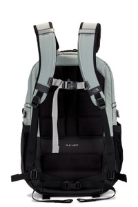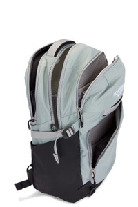 - Textile exterior with ripstop lining - Made in Vietnam - Top dual zipper closure - One main compartment Protected laptop compartment - Front compartment has built-in organization with zipper pockets and padded tablet sleeve - Front exterior fleece lined zipper pocket - Side water bottle pockets - Measures approx 15" W x 19.5" H x 6" D - Revolve Style No. TACF-MY43 - Manufacturer Style No. NF0A52SF