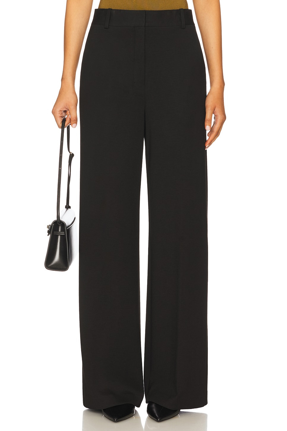 - Self: 83% viscose 11% elastane 6% polyamide Pocket Lining: 65% polyester 35% rayon - Dry clean only - Zip fly with hook and bar clasp closures - Side slant pockets - Back welt pockets - Thick jersey fabric.23" at the knee breaks to 26" at the leg opening - Revolve Style No. THEO-WP304 - Manufacturer Style No. O0826212