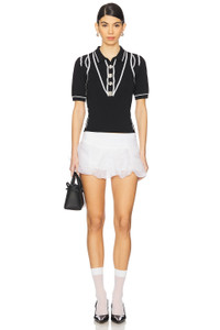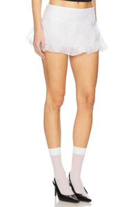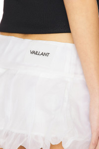 - Self: 100% silk Lining: 100% rayon - Made in France - Dry clean only - Fully lined - Hidden side seam zipper - Lightweight organza fabric with banded waist and bubble hem - Rubberized logo patch at waistband - Skirt measures approx 10.5" in length - Revolve Style No. VLAR-WQ10 - Manufacturer Style No. SK030