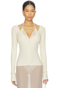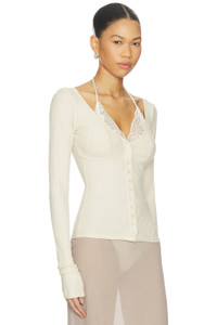 - 97% lyocell 3% elastane - Made in Poland - Dry clean - Front button closure - Layered lace neckline with a self-tie closure - Lightweight ribbed jersey fabric - Revolve Style No. VLAR-WK6 - Manufacturer Style No. KN002A