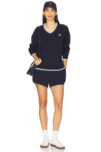 - Self: 81% viscose 15% polyester 4% elastane Contrast Fabric: 68% viscose 29% polyester 3% elastane - Machine wash cold - V-neck - Rubberized logo detail - Midweight knit fabric with ribbed collar, cuffs, and hem - Item not sold as set - Revolve Style No. VARR-WK182 - Manufacturer Style No. VAR02605