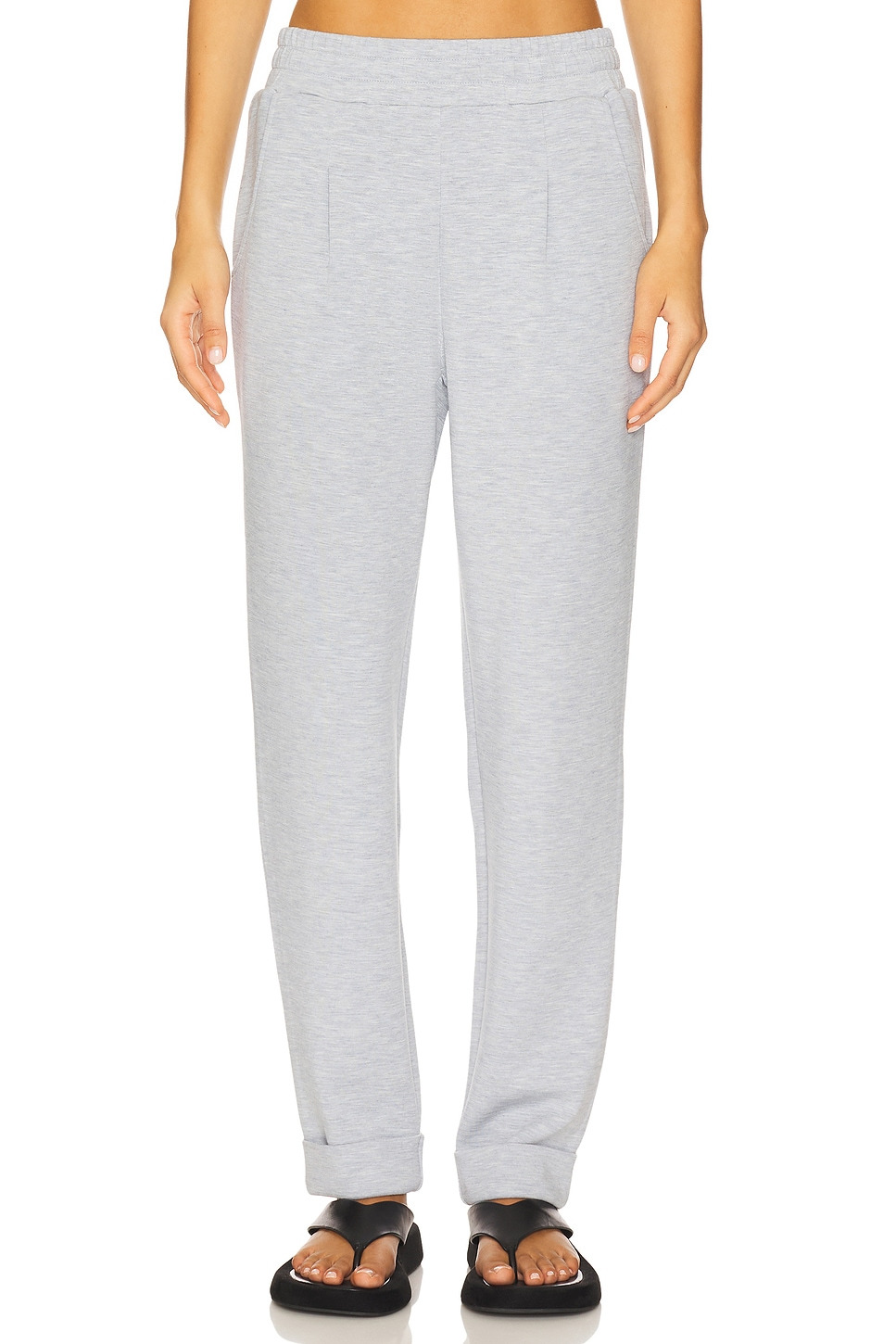 - Body: 81% viscose 15% polyester 4% elastane Rib: 64% viscose 32% polyamide 4% elastane - Hand wash recommended - Front interior drawstring tie closure - Side seam pockets - Midweight soft jersey fabric with cuffed styling - Item not sold as a set.18" at the knee narrows to 12" at the leg opening - Revolve Style No. VARR-WP170 - Manufacturer Style No. VAR01922