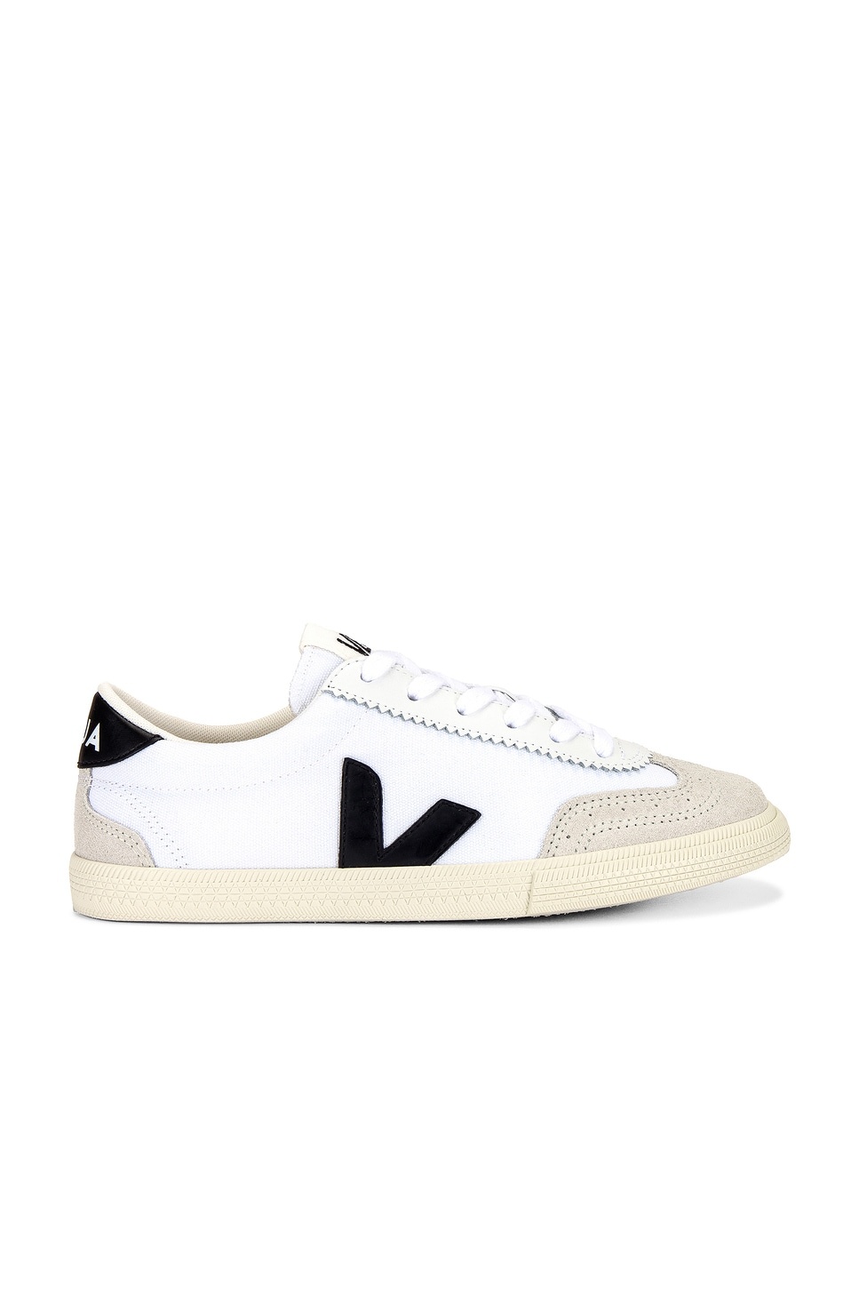 - Canvas and leather upper with suede trim and Amazonian rubber sole - Made in Brazil - Lace-up front - Signature rubberized V logo at side panels - Logo patch at tongue with embroidered Veja logo - Low-cut collar with leather back counter and printed Veja logo - Revolve Style No. VFJA-MZ61 - Manufacturer Style No. VO0103524