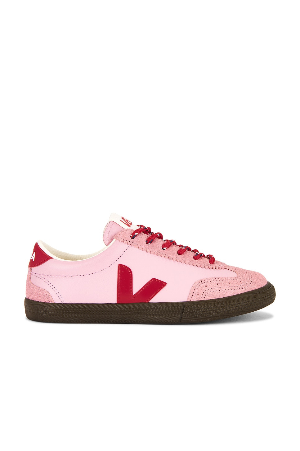 - Leather upper with suede trim and Amazonian rubber sole - Lace-up front - Rubberized V at outer panels - Embroidered Veja logo patch at tongue - Serrated design at laces - Low-cut collar with printed Veja logo at back counter - Revolve Style No. VEJA-WZ307 - Manufacturer Style No. VO2021182