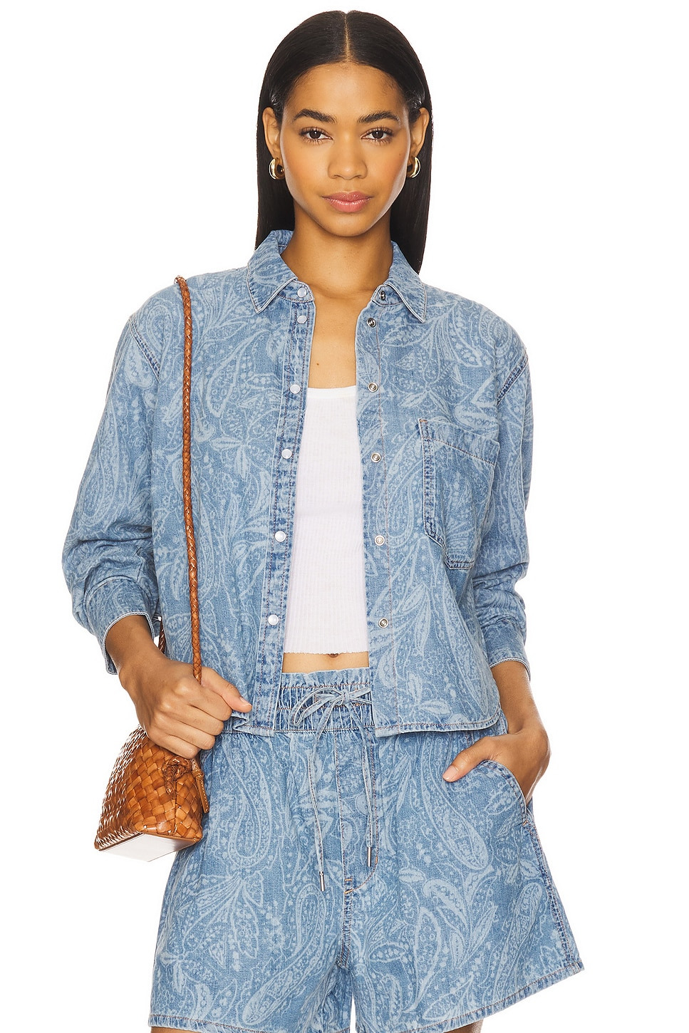 - 100% cotton - Machine wash - Front snap button closure - Breast slip pocket - Snap button cuffs - Cropped styling - Midweight stretchy denim fabric - Item not sold as a set - Revolve Style No. VBRD-WS214 - Manufacturer Style No. J25037100095AA