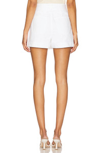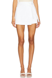 - 100% cotton - Machine wash cold - Zip fly with button and hook and bar closures - Detachable belt tie.4-pocket styling - Wrap styling - Midweight denim fabric - Skort measures approx 14" in length - Revolve Style No. VBRD-WF54 - Manufacturer Style No. J2504D140035WH
