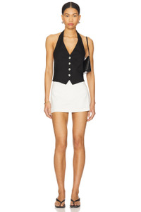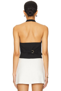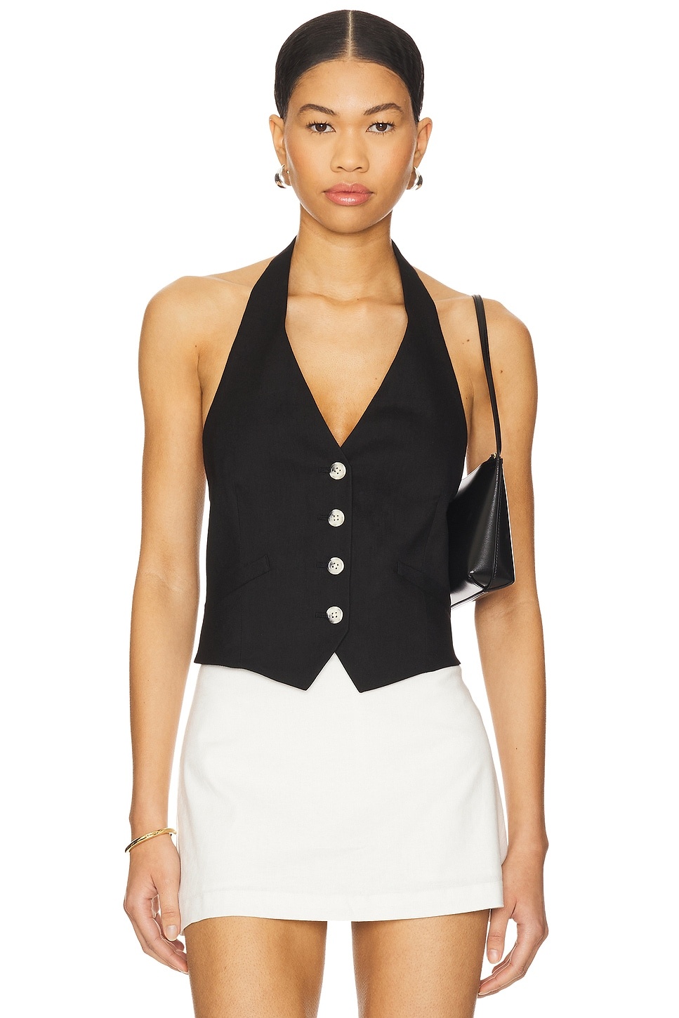 - Self: 55% linen 44% viscose 1% elastane Lining: 100% polyester - Dry clean only - Front button closure - Halterneck styling - Front faux welt pockets - Back adjustable strap with gold-tone buckle closure - Cropped styling - Midweight twill fabric - Revolve Style No. VBRD-WS221 - Manufacturer Style No. 2504LN3310678