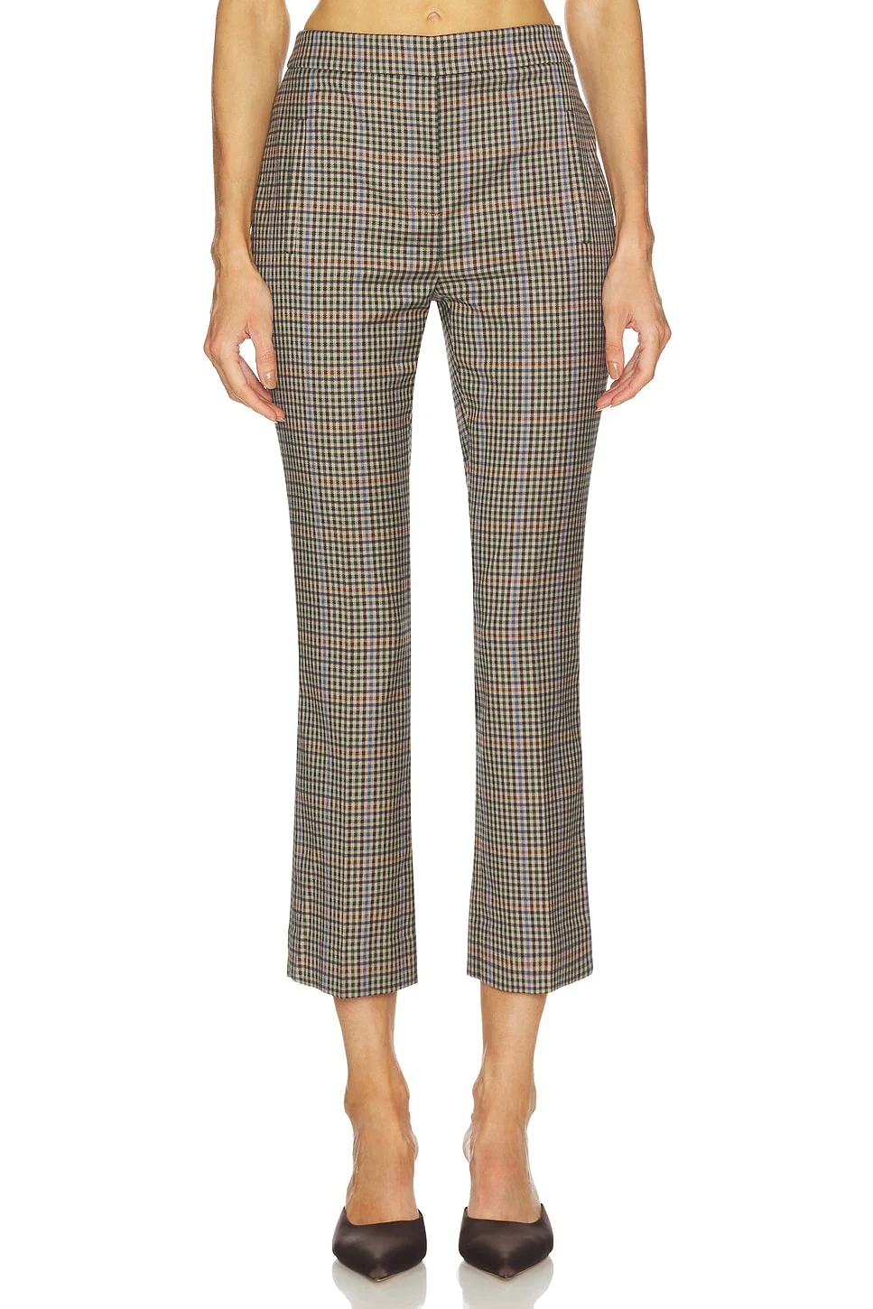 - 63% polyester 34% viscose 3% elastane Lining: 100% cupro - Made in Vietnam - Dry clean only - Zip fly with hook closure.4-pocket styling - Capri style - Revolve Style No. VBRD-WP124 - Manufacturer Style No. 2511PL10260360