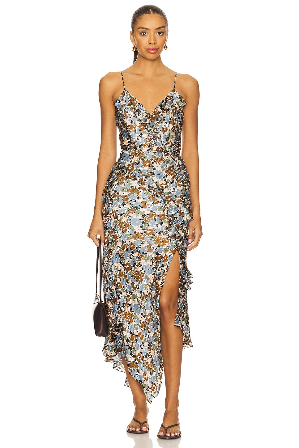 - Self: 100% silk Lining: 100% polyester - Dry clean only - Partially lined - Hidden side zip closure - Asymmetric hem - Midweight chiffon fabric - Revolve Style No. VBRD-WD201 - Manufacturer Style No. 2506FL6120097