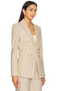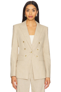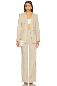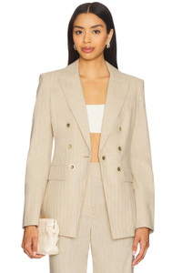 - Self: 57% cotton 21% polyester 20% viscose 1% nylon 1% elastane Lining: 95% polyester 5% span taffeta - Dry clean only - Front button closure.3-pocket styling - Padded shoulders - Double breasted detail - Midweight suiting fabric - Item not sold as a set - Revolve Style No. VBRD-WO200 - Manufacturer Style No. 2504NV341532