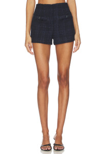 - Self: 39% acrylic 22% virgin wool 16% polyester 9% wool 7% polyamide 7% other fibers Lining: 100% polyester - Made in USA of imported materials - Dry clean only - Zip fly with dual hook and bar closure - Front faux button pockets - Midweight tweed fabric - Item not sold as a set - Shorts measure approx 12.5" in length - Revolve Style No. VBRD-WF64 - Manufacturer Style No. 2512TW12280258
