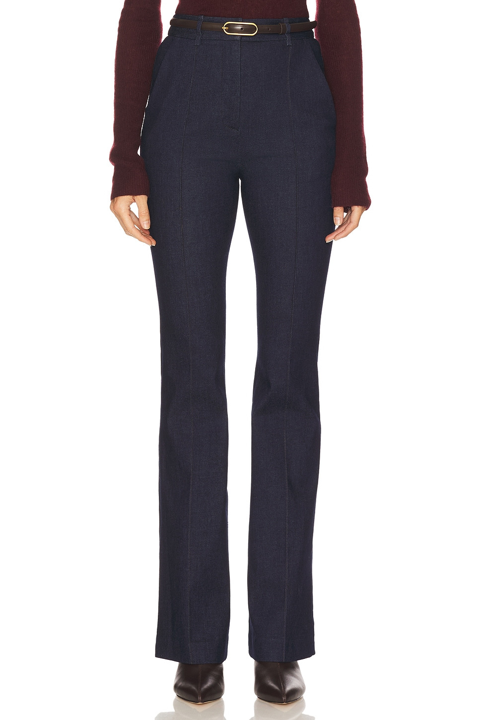 - Self: 75% cotton 23% polyester 2% elastane Lining: 100% polyester - Dry clean only - Zip fly with hook and bar closure - Detachable waist belt.4-pocket styling - Subtle stretch denim fabric.18" at the leg opening - Revolve Style No. VBRD-WJ113 - Manufacturer Style No. 2408NV2660494