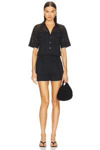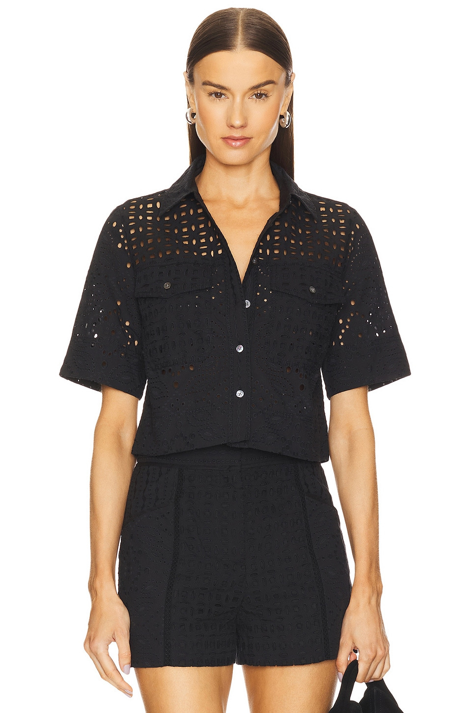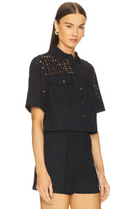- 100% cotton - Dry clean only - Front button closures - Front flap pockets with button closures - Collared design - Midweight linen fabric with eyelet detailing throughout - Garment is made with a semi-sheer fabric, undergarments can show through - Item not sold as set - Revolve Style No. VBRD-WS218 - Manufacturer Style No. 2504EM7841232