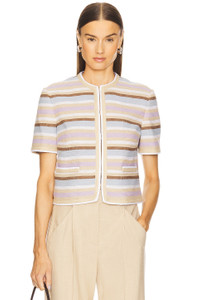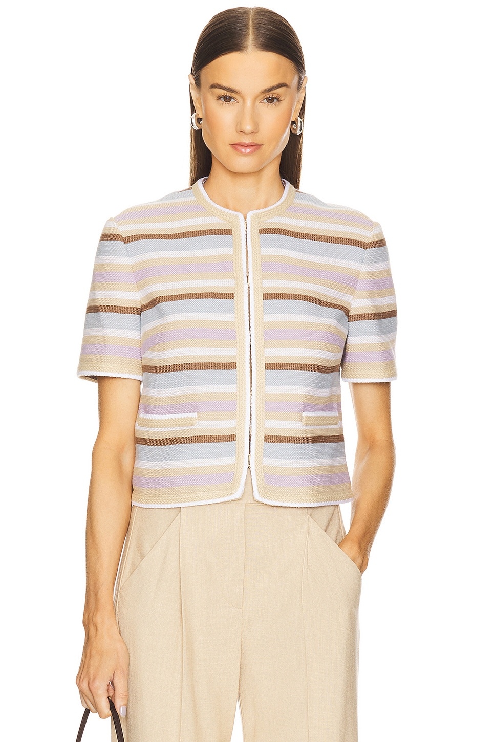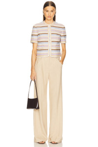 - Self: 45% cotton 38% polyester 17% viscose Lining: 100% polyester - Dry clean only - Front hook and bar clasp closures - Front welt pockets - Cropped styling - Midweight knit fabric with contrast trim - Item not sold as set - Revolve Style No. VBRD-WO199 - Manufacturer Style No. 2504ST1211047