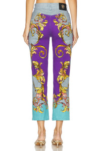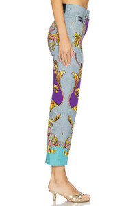- Self: 97% cotton 3% elastane Lining: 65% polyester 35% cotton - Machine wash cold - Zip fly and dual button closures.5-pocket design - Contrast logo patch at back waistline with gold-toned metal hardware - Midweight cropped subtle stretch denim fabric - Item not sold as set.17" at the knee narrows to 15" at the leg opening - Revolve Style No. VJEA-WJ3 - Manufacturer Style No. E78HAB5P5_EES140L54
