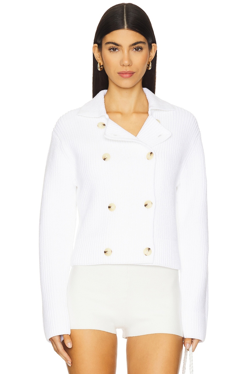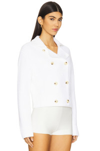 - 90% cotton 10% polyester - Made in China - Machine wash - Front double-breasted button closure - Chunky knit fabric - Revolve Style No. VINCE-WO293 - Manufacturer Style No. V108879709