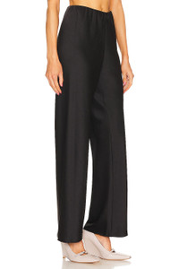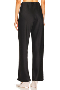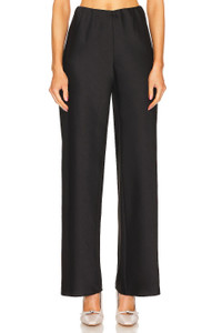 - 55% polyester 45% recycled polyester - Made in China - Machine wash - Pull-on styling with elastic waistband - Midweight satin fabric.18" at the knee and 18" at the leg opening - Revolve Style No. VINCE-WP240 - Manufacturer Style No. V995521907