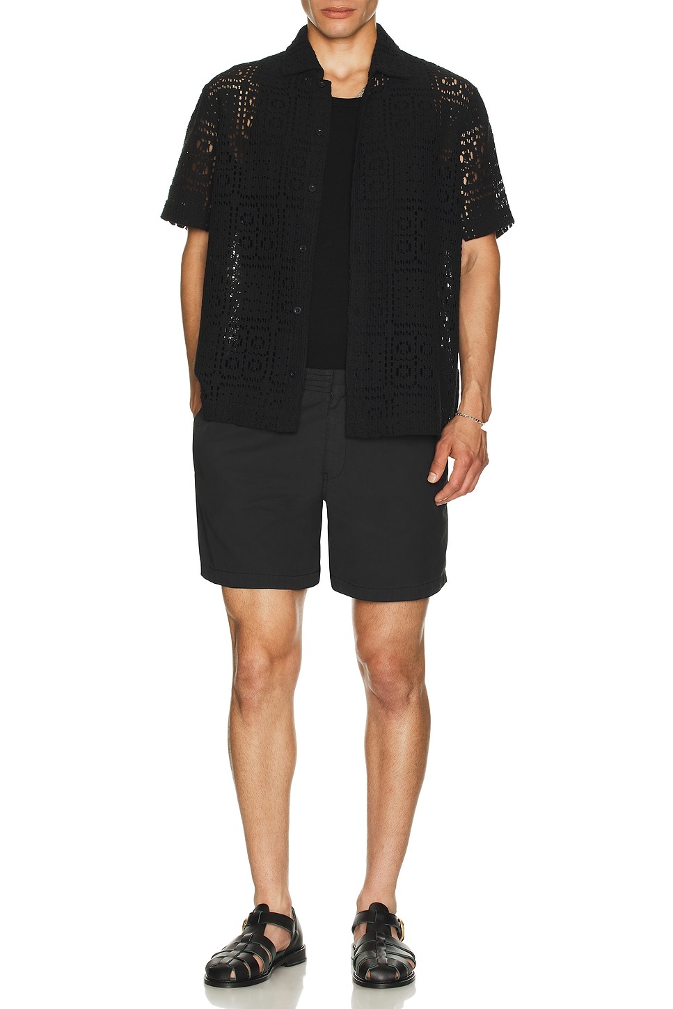 Men's Crochet Button-Down Shirt