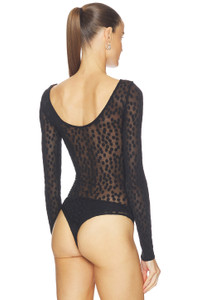 - 94% polyamide 6% elastane - Machine wash - Snap gusset closure - Boat neck design - Thong back - Lightweight mesh fabric - Garment is intentionally sheer, undergarments will show through. - Revolve Style No. WFOR-WS117 - Manufacturer Style No. 78331