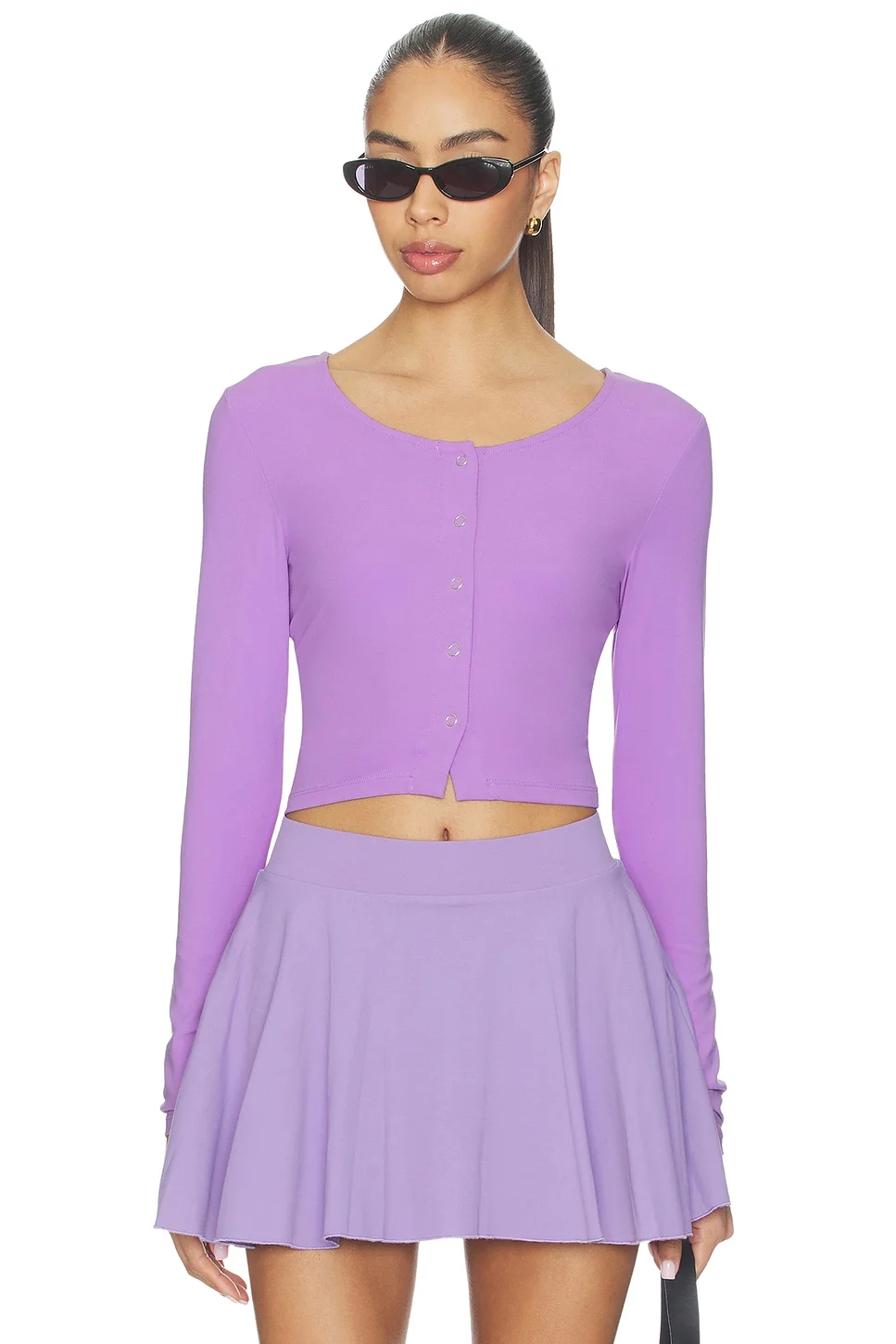 - 81% nylon 19% spandex - Made in China - Machine wash - Front snap-button closure at front - Cropped design - Midweight stretch jersey textile - Revolve Style No. YEAR-WK50 - Manufacturer Style No. TN4603-GP